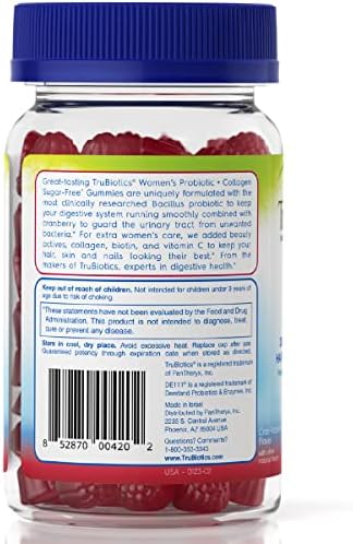 DAILY SUPPLEMENTS FOR WOMEN – TruBiotics Probiotic Gummies with Collagen help support women’s digestive & urinary function and help maintain the health of your hair, skin, and nails.* They are sugar free, and come in a delicious raspberry-cranberry flavor