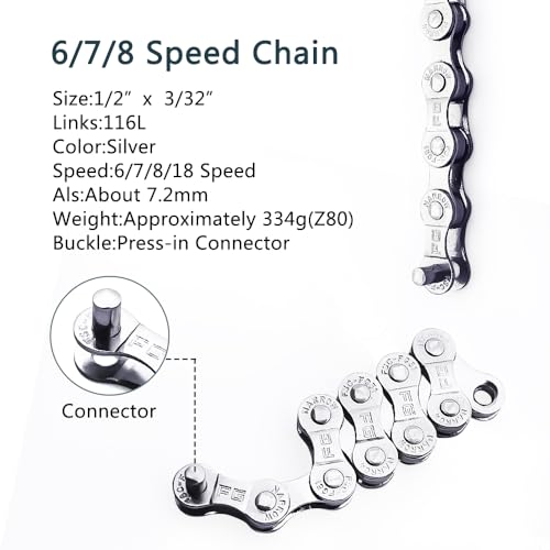 Complete Package: Includes 1 set of 6/7/8 speed bike chain with 116 links.