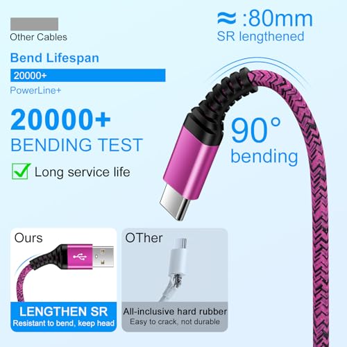 【Durable & Heavy USB C Cord】Made of reinforced SR design using TPE material can withstand 20,000+ bending tests, which effectively protects iphone 15 charger wire from breaking. Premium metal zinc alloy connectors made Nylon Braided samsung fast charging cable usb c samsung s24 phone cable without tangle,more durable with best price for long life usage.