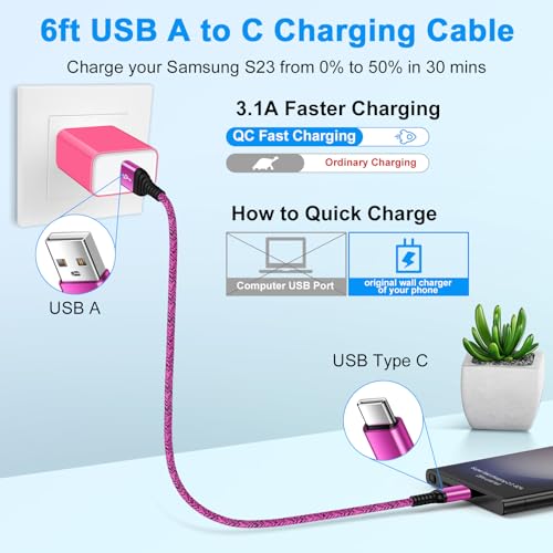 【Compatible for All USB C Devices】: Usb a to usb c cable fast charging for iPhone 15 Pro Max,15 Pro,15 Plus,15;Samsung Galaxy S24 Ultra S24+ S24, A15 A25 A14 A54 A13 5G, A33 5G, A53 A04s A03s,Z Fold5,Z Flip5, S23 5G,S23+,S23 Ultra 5G,S23 FE,S22 S21 S20;Google Pixel 8 8 Pro,7a 7,7 Pro,6,6 Pro,5a,5,4a 5G,4a,4 3a XL;Motorola Edge 2024 2023 2022,razr 40 pro,Edge+,Moto g power/g stylus/G9 G8 G7 Z4,Edge 40,Edge 40 Pro,X40,Edge 30 Ultra,X30 Pro and more usb c devices.