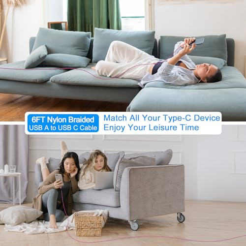6 foot extra long usb type c cable fast charging made you charging wherever you want.