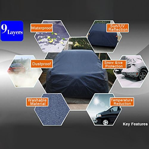 Size:490 x 180 x 160cm/ 193 x 71 x 63inch (L*W*H);NOTE: please measure before buying the cover.If your car in outdoors and in rain weather for a long time, it is recommended to take off the car cover for air-dry after rain, to prevent the fabric from absorbing water and then exposed to the sun that easily cause the coating off