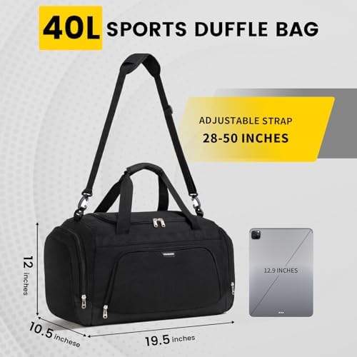 Vorspack Small Gym Bag – 40L Duffle Bag for Men Women Lightweight Duffel Bag with Shoe Compartment Wet Pocket Travel Bag Sports Bag for Sports Gym Travel – Black