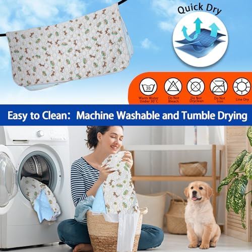 🐕Super Absorbent & Non-Slip: The washable pee pads for dogs are super absorbent, locking in moisture quickly without the stain staying on it and preventing messes of floor. Reusable puppy pads hold 20–30 times urine all day while still keeping your dog comfortable.The bottom layer with anti-slip silicone design allows the waterproof puppy pads to stay in the floor, so keeping your pet safe. Washable puppy pee pads also keep your floors away from scratches and dirt, leaving your home clean.