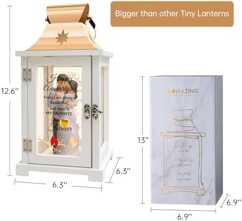 Unique Wedding Anniversary Lantern: The Anniversary Lantern is 12.6×6.3×6.3 inches, much more bigger than other small little lanterns, and way better than usual flowers. The wedding anniversary lantern is the best memorable gift for a party. It is the perfect decoration to display on a table or shelf that will remind the loving couple of all the years spent together. Ideal for any home decor styles
