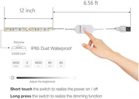 LED strip with very strong double sided adhesive tape, touch dimmer, USB power supply, 6.6ft cord and 8pcs adhesive clip