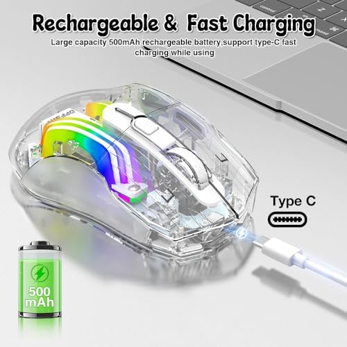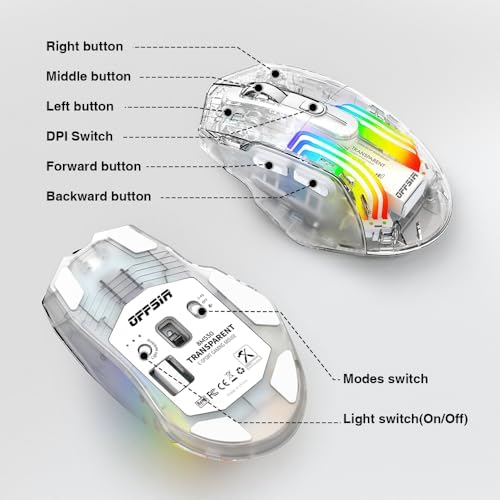【Customizable 11 RGB Lighting】Take your gaming setup to the next level with the 11 RGB light effects on our gaming mouse. Choose from a wide range of colors and lighting modes to create a personalized atmosphere that matches your gaming style. The transparent design also adds a touch of futuristic aesthetics.