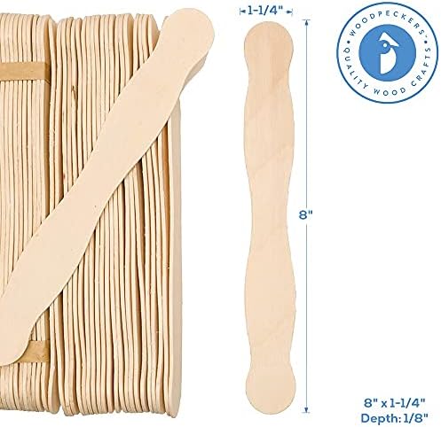 Wooden 8″ Fan Handles, Wedding Programs, or Paint Mixing, Pack 75, Jumbo Craft Popsicle Sticks for Auction Bid Paddles, Wooden Wavy Flat Stems for Any DIY Crafting Supplies Kit, by Woodpeckers