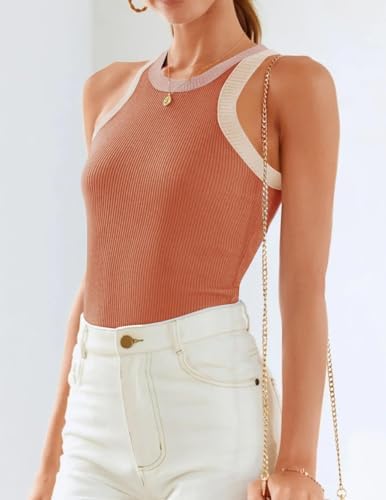 ZESICA Women Summer Sleeveless Tops Color Block Tops