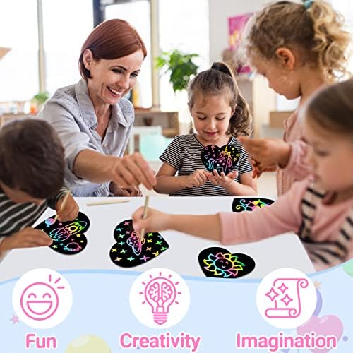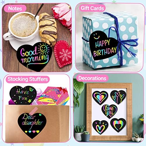 💖160 PCS Heart Rainbow Scratch Notes – This Scratch Art Note pad includes 160 pcs Scratch paper(Size: 3.5*3.5inch) and 5 Styluses in a box. Just scratch off the black coating, every child will love the rainbow underneath at first sight. Perfect gift for girls and boys in any age who likes to doodle or write. Easy and fun to use, No Paint and No Messy, Great art and crafts develop painting ability, imaginative ability and creative ability.